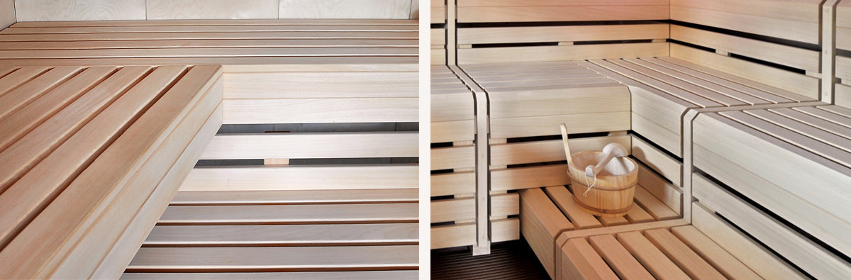 Die Holz­arten unter­scheiden sich nicht nur in Be­­schaf­fen­heit und Aus­sehen von­ein­ander, sonder haben auch unter­schied­lich wärme­lei­tende Eigen­schaften. So ver­wenden wir z.B. für unsere Sauna­bänke Abachi­holz, da dieses Holz eine geringe Wärme­leit­fähig­keit auf­weist.
